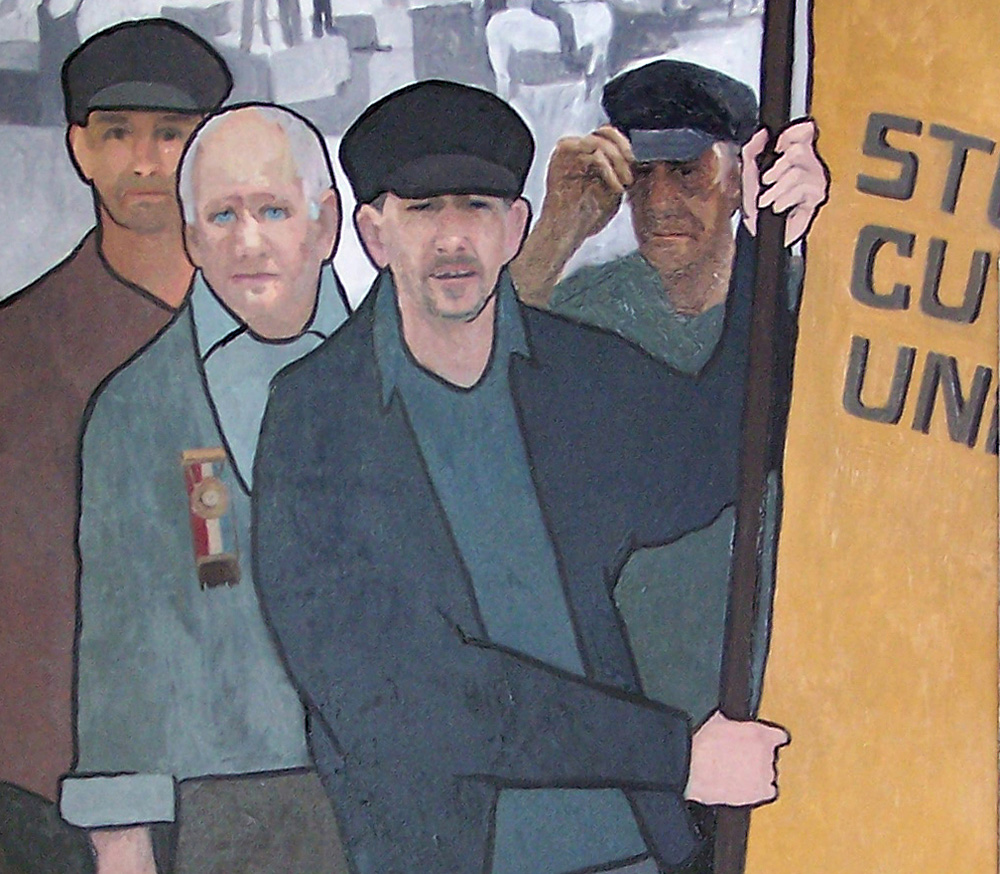 This panel depicts Maine’s 1889 Labor Day parade where more than 600 workers from across the state and representing many occupations marched through Portland’s streets under their union banners. After the parade had ended, hired trains took laborers and their families to Sebago Lake for a picnic to listen to music and speeches. Over the years, the Labor Day speeches continued to inspire workers and also remind them of their shared goals of fair wages, improved working conditions, and of their indispensable role in creating the wealth of the state. Labor Day celebrations grew in Maine until it became a state holiday in 1891 and a federal holiday in 1894.
