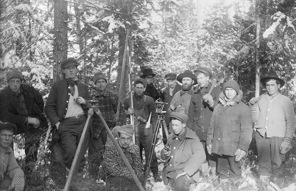 Survey Team, photograph by Isaac Simpson, Maine, ca.1910. Maine State Museum. Gift of Jim Thompson, 2017.24.459.