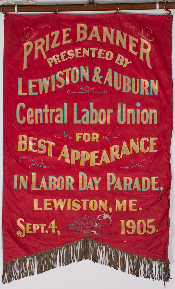 Parades have marked Labor Day celebrations since the first observance in New York City in 1882. When labor unions marched in parades, they often carried banners and wore uniforms to demonstrate their pride and unity. The Lewiston & Auburn Central Labor Union awarded this banner to a local trade union who was judged to have the best appearance of a union in the 1905 Lewiston parade.