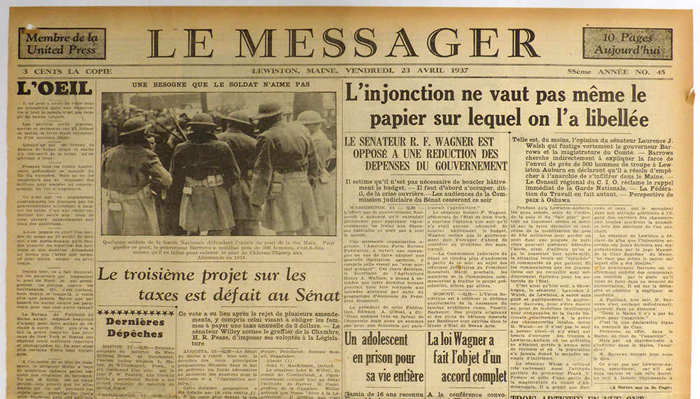 Le Messager Newspaper, Lewiston, Maine, April 23, 1937. Courtesy of the Maine State Library.