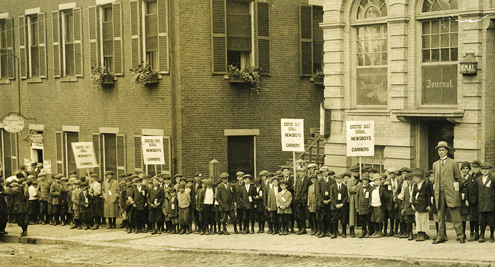 Biddeford Journal Staff and Newsboys, Biddeford, Maine, June 30, 1912. Courtesy of the McArthur Public Library.
