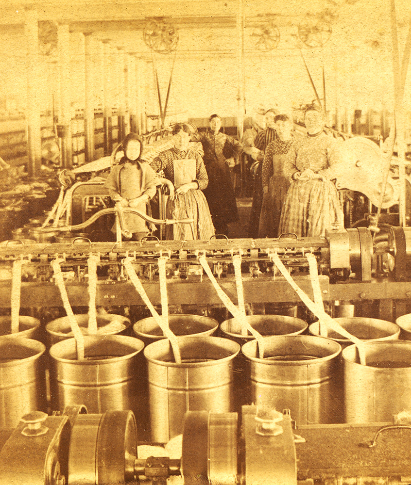Continental Mills Card Room, photograph by Henri Larocque, Lewiston, Maine, 1885-1889. Courtesy of the Maine Historic Preservation Commission.