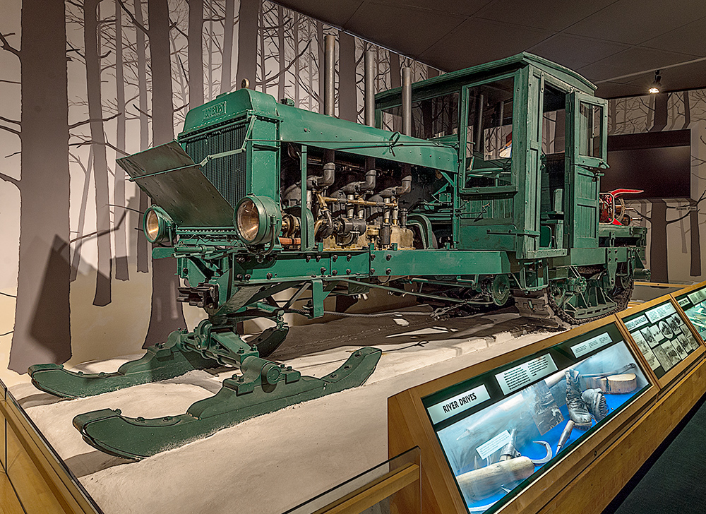 In the winter of 1925, this tractor worked around the clock, six days a week, for the ninety days it was feasible to use such a vehicle. Edward Lacroix's lumber company purchased this Lombard log hauler along with six others that year. By 1933, Lombard tractors had become nearly obsolete as new logging roads and new vehicles became available.