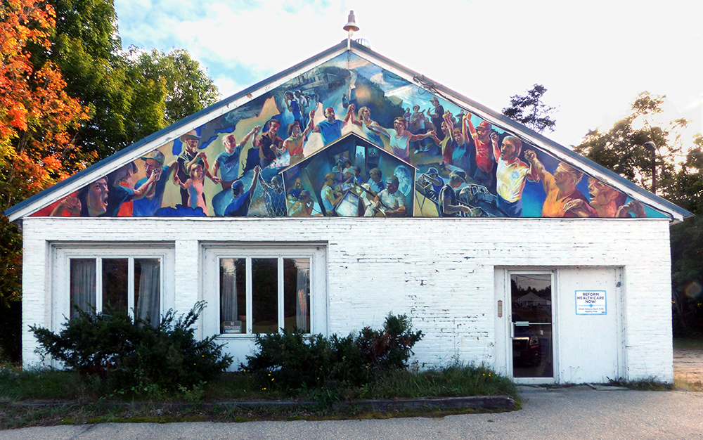 Local 14 Union Hall with Mural, painted by Andrea Kantrowitz, Jay, Maine, 1987.