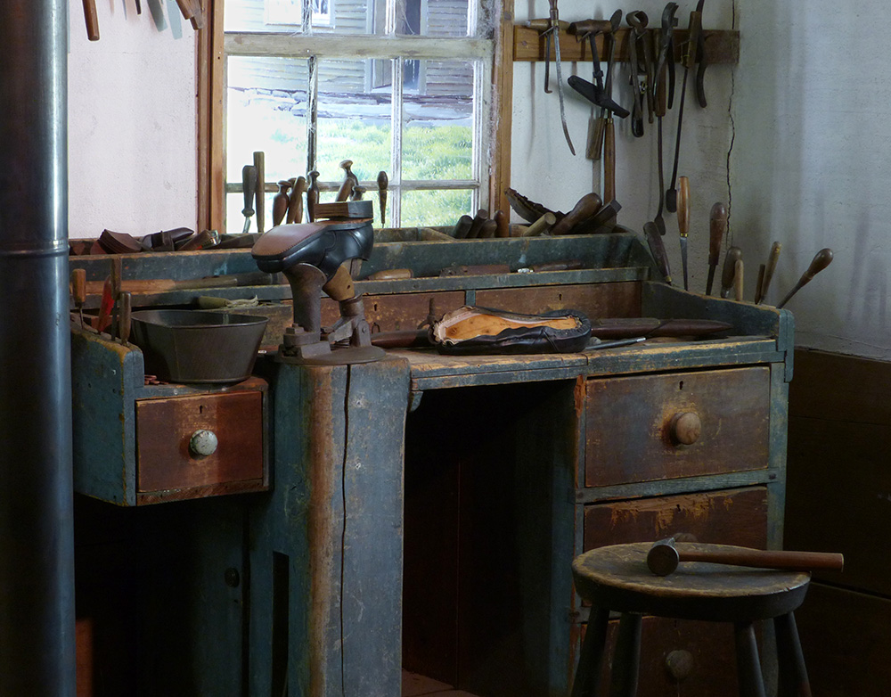 Visit the Maine State Museum Shoe Shop display to view pre-industrial shoe making tools.